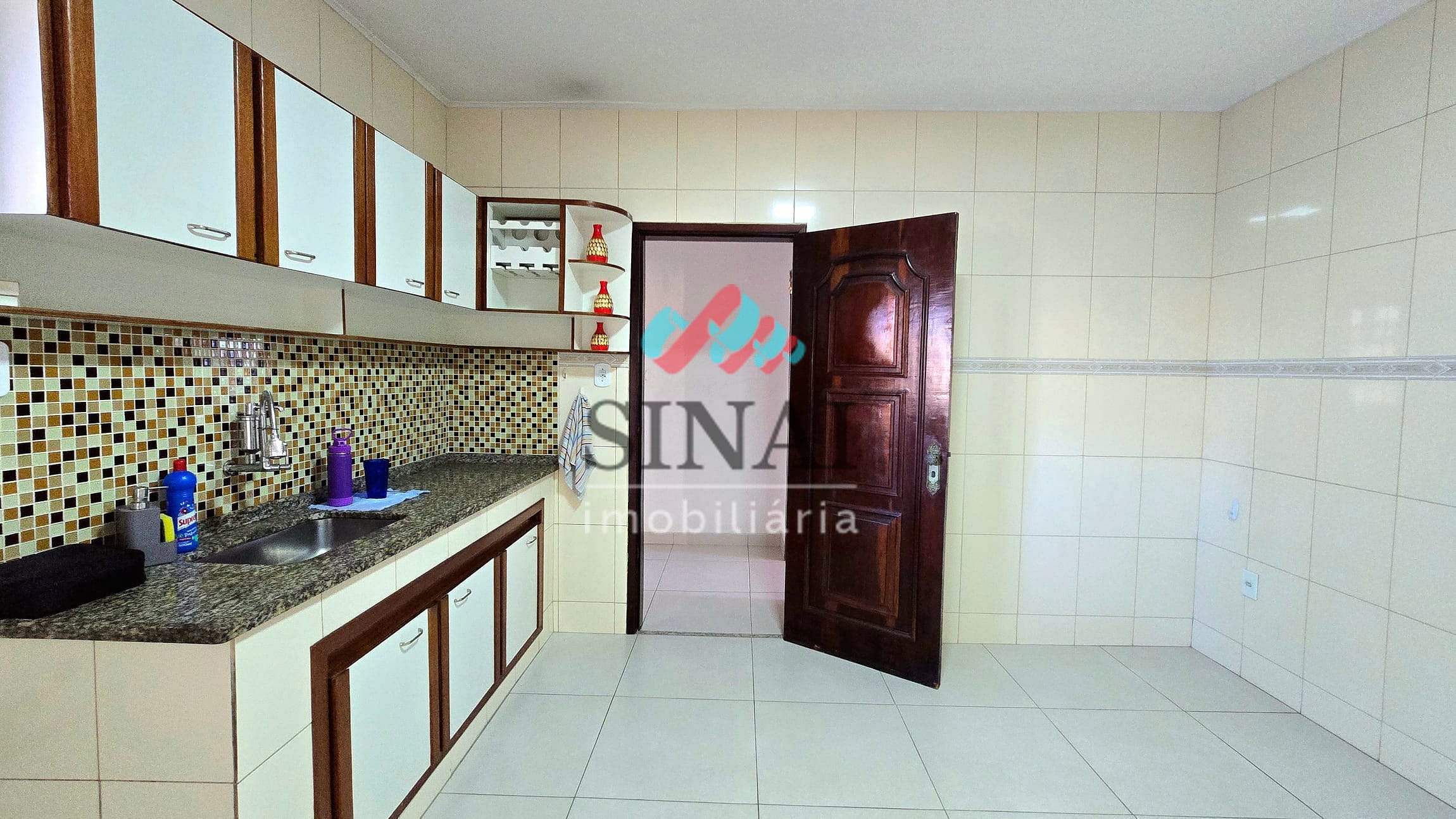 A copa-cozinha, equipada com armários sob medida e acabamento clean, garante praticidade e funcionalidade no preparo de refeições.