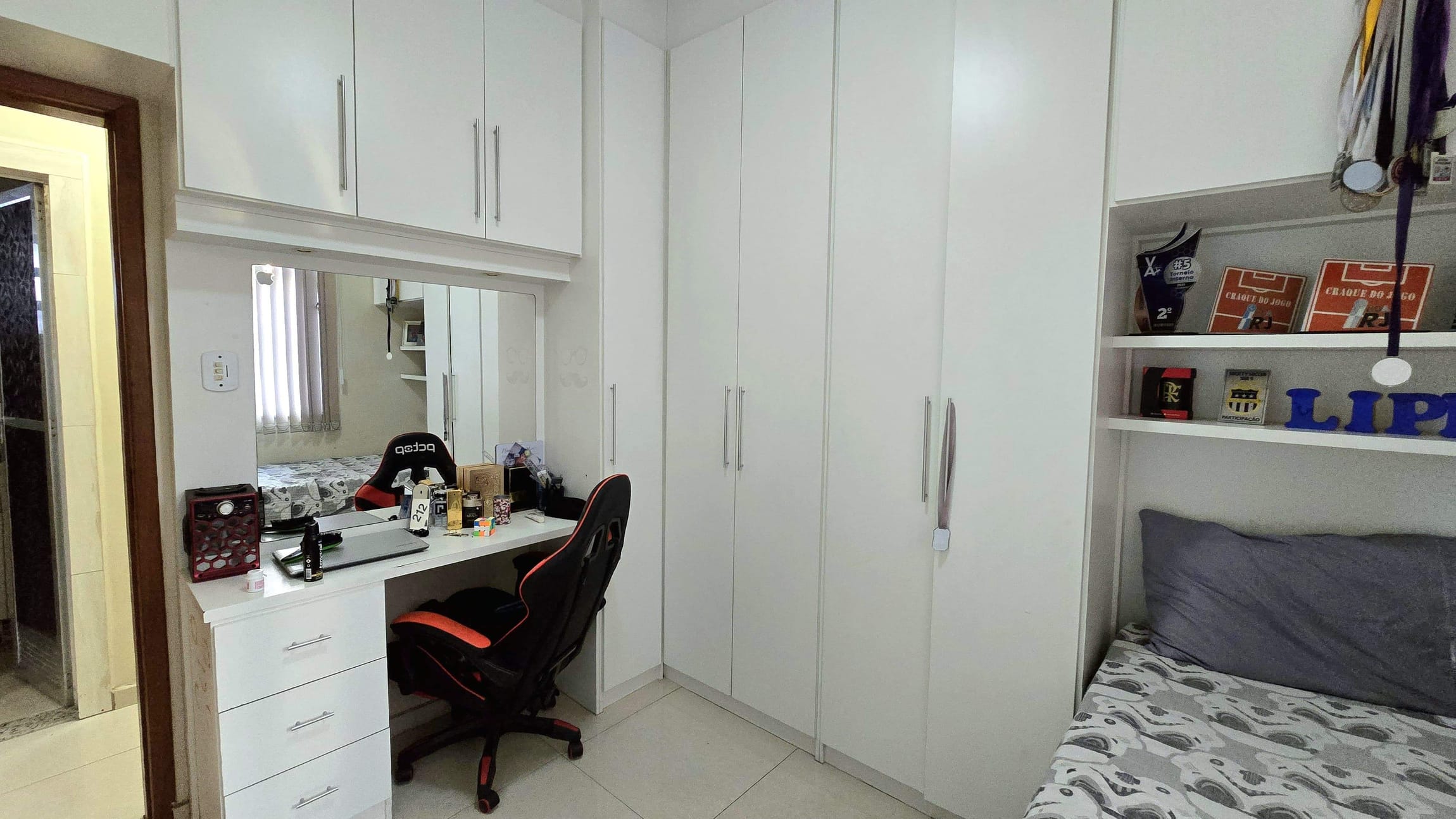 dois quartos amplos com moveis planejados modernos , e um banheiro social com armário e box blindex , a cozinha com armários planejados , área externa com lavanderia , Para os momentos de descontração, uma churrasqueira no terraço gourmet é ideal para reunir amigos e familiares.