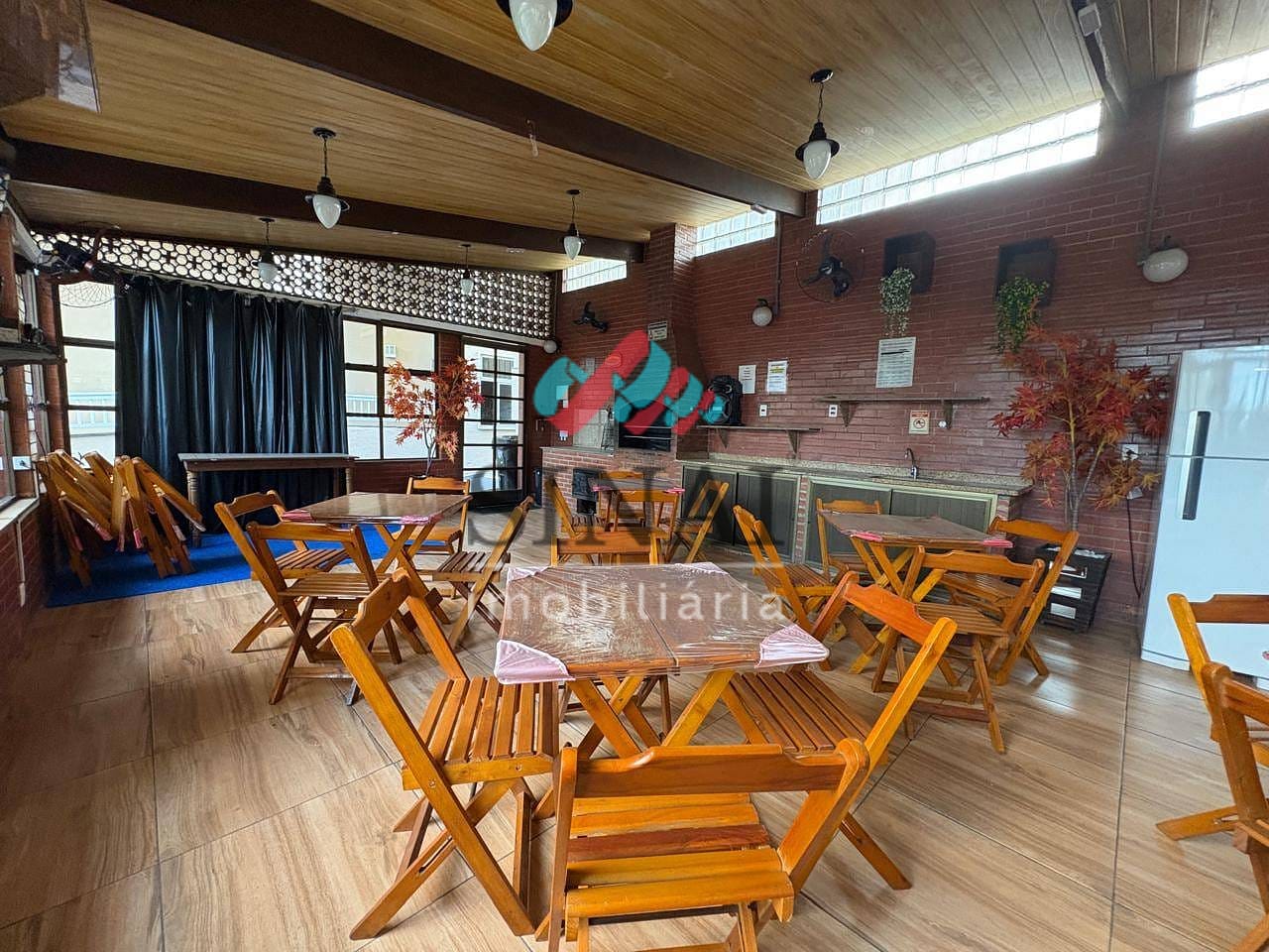 Salão de festas com churrasqueira