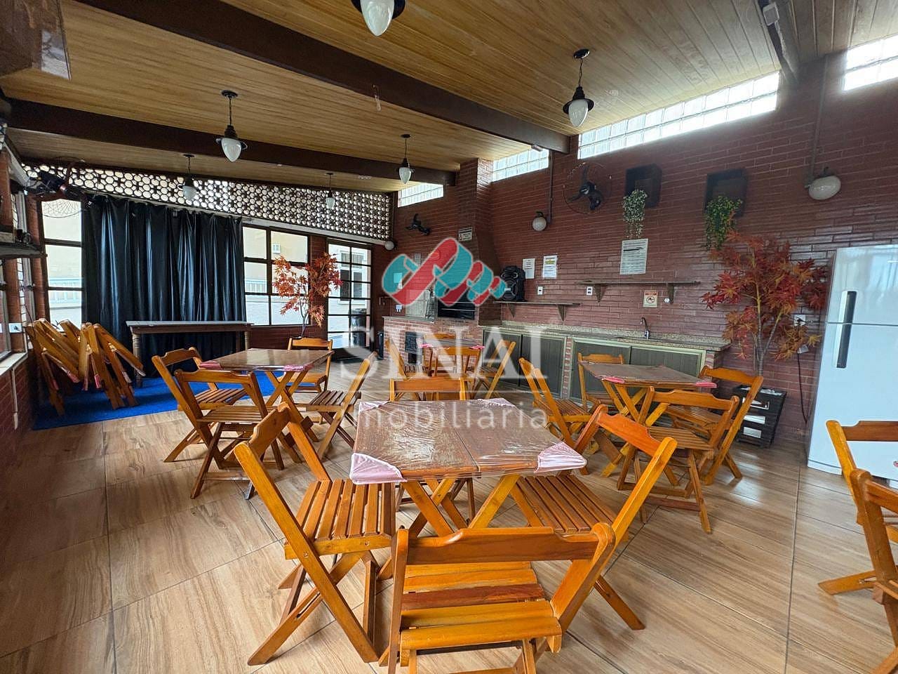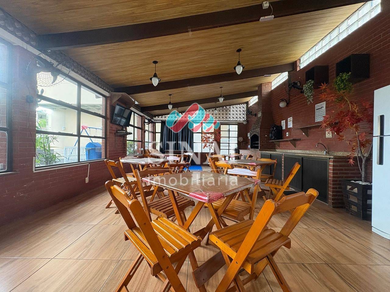 Salão de festas com churrasqueira