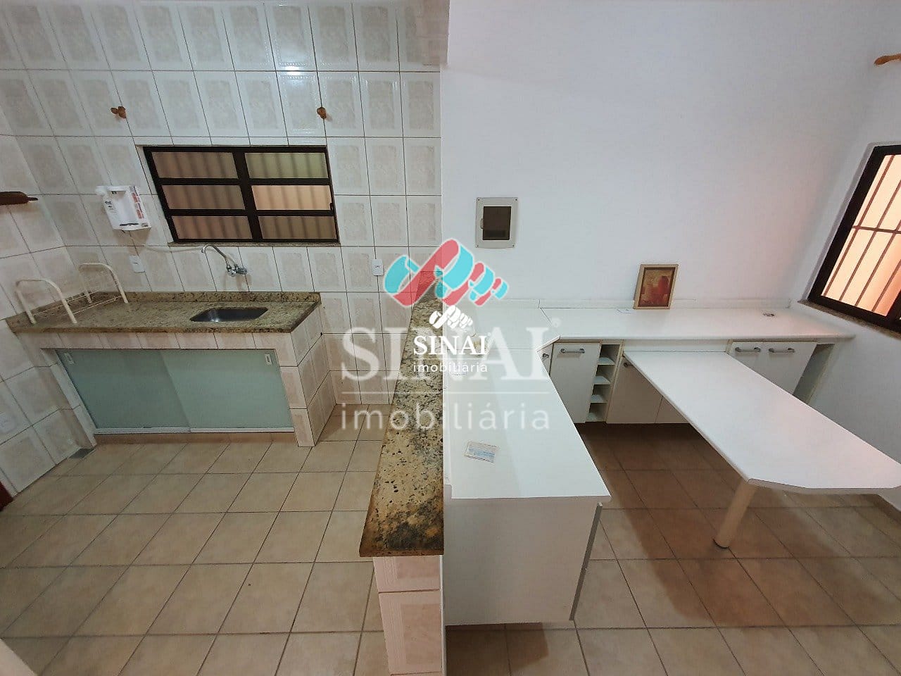 * Copa com armários planejados em todo o ambiente + mesa embutida