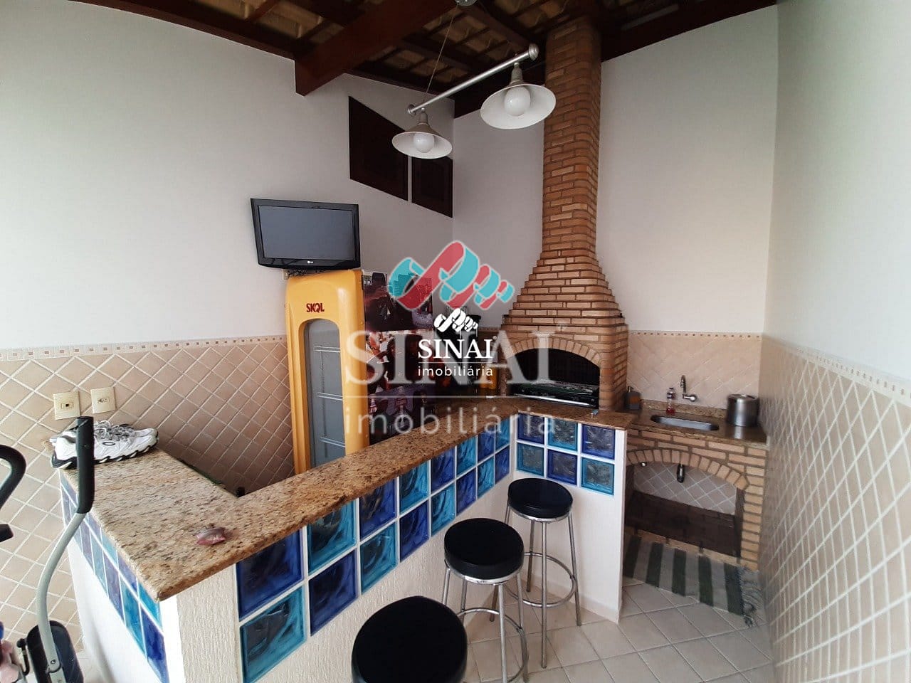 COPA, COZINHA E BANHEIROS C/ PAREDES AZULEJADAS ATÉ O TETO.