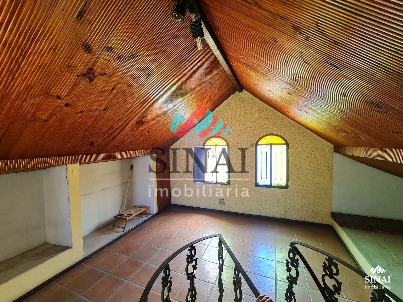 Vamos aos detalhes: são três quartos, sendo uma suíte, lavabo no primeiro andar, uma sala ampla, copa-cozinha, piscina, churrasqueira, vaga para até três carros, dependência completa de empregada e um sótão encantador.